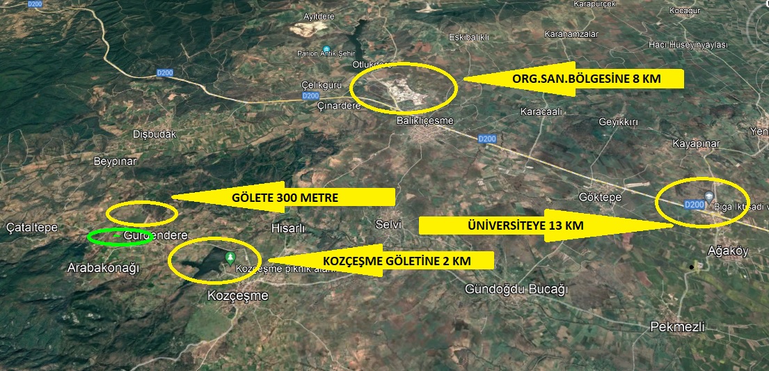 * GÖLETE 300 m, ÜNİVERSİTEYE 13 km, ORG.SAN. BÖLGESİNE 8 km, KOZÇEŞME GÖLETİNE 2 km MESAFEDEDİR.
