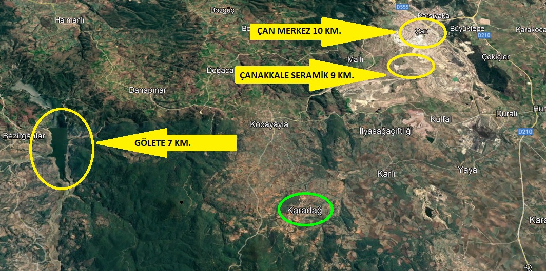* GÖLET 7 km, ÇAN MERKEZ 10 km, ÇANAKKALE SERAMİK FABRİKASI 9 km MESAFEDEDİR.