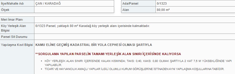 * 0 ADA / 1323 PARSEL