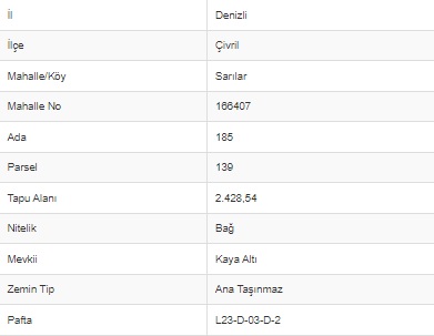 DENİZLİ, ÇİVRİL, SARILAR 2.428 m² BAĞ Satılık Denizli/Çivril m2 2,428 345.000 TL Tüm 6 fotoğrafı göster DENİZLİ, ÇİVRİL, SARILAR 2.428 m² BAĞ Satılık Denizli/Çivril m2 2,428 345.000 TL Açıklama * 185 ADA / 139 PARSEL * RESMİ KADASTRAL YOLA 42 m CEPHESİ VARDIR. * KURU VE SULU TARIM ARAZİSİDİR. * %5 EĞİMLİ BİR ARAZİDİR. * BAĞ EVİ YAPIMINA UYGUNDUR. * KEKİK, LAVANTA VE ÜZÜM BAĞI EKİMİNE UYGUNDUR. * ANA ASFALT YOL 170 m, SARILAR KÖYÜ 1 km, ÇİVRİL MERKEZ 10 km, KARAYOLU 4 km, IŞIKLI GÖL 17 km MESAFEDEDİR. Emlak detayları ID 7373 Fiyat 345.000 Boyut 2,428 m2 Tür Bağ Durum Satılık Danışman ile iletişime geç Hakan GÜLAY +90 216 540 40 45 hakan.gulay@akvagrup.com Öne Çıkan İlanlar Size en uygun seçeneği seçebilmeniz için tüm ilan türlerini keşfedin. Bağ Vitrin İlanı 2.750.000 TL SAKARYA, GEYVE, SAFİBEY 5.341 m² BAĞ Sakarya/Geyve Yatak 0 Banyo 0 m2 5,343 Bağ Tarla 300.000 TL AFYON, DAZKIRI, ÇİFTLİK, 6.410 m² BAĞ & TARLA Afyon/Dazkırı Yatak 0 Banyo 0 m2 6,410