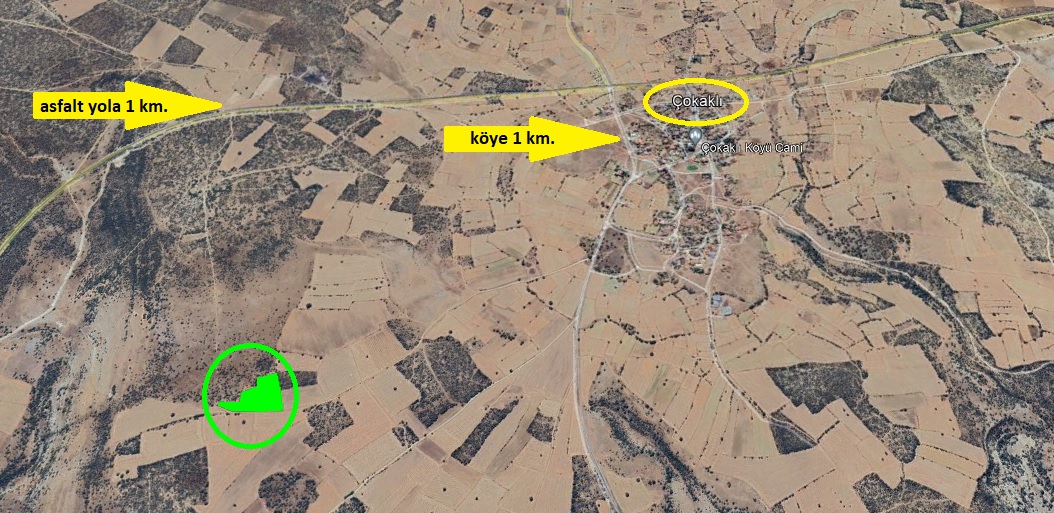* ÇOKAKLI KÖYÜ 1 km, ANA ASFALT YOL 1 km, KARAHALLI MERKEZ 7 km MESAFEDEDİR.